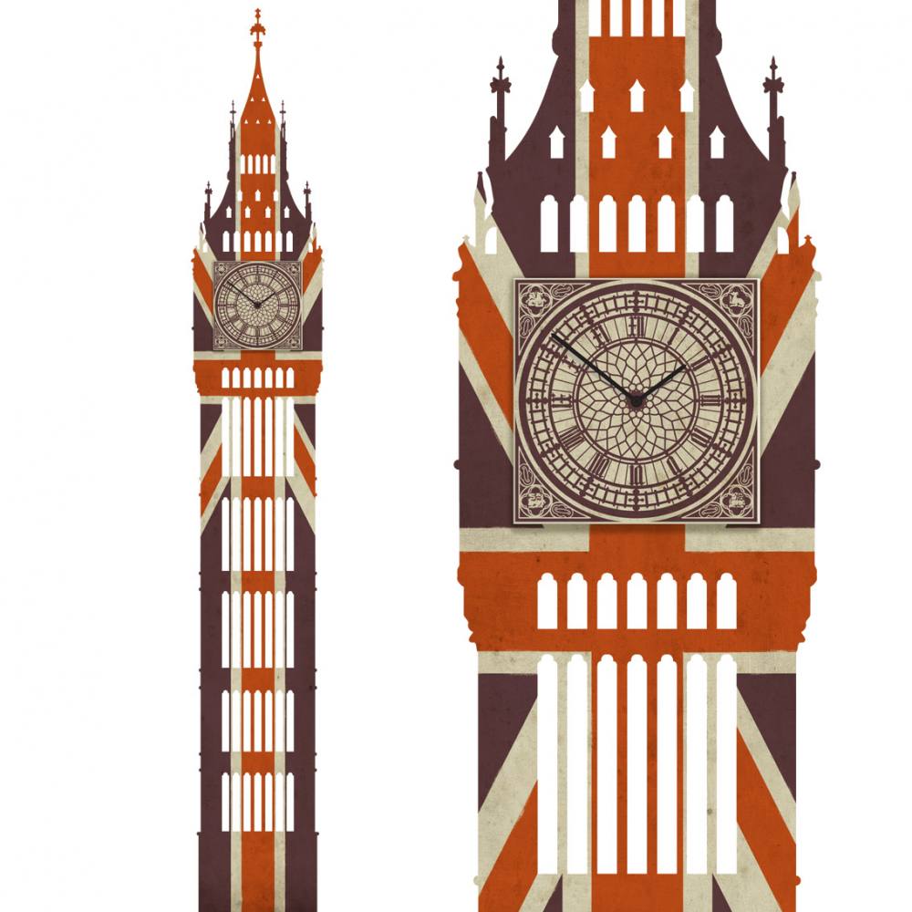 The tower comprises a large wall sticker 2 metres tall with printed vintage distressed flag, with all windows cut out to allow your chosen wall colour to show through. The working clock is made from durable steel with distressed printed face. Featuring black metal hands and ultra quiet German 'ticking' quartz movement, it ideal for living room or bedroom use. Easily attached to the wall, no drilling is required. We even include the battery!
