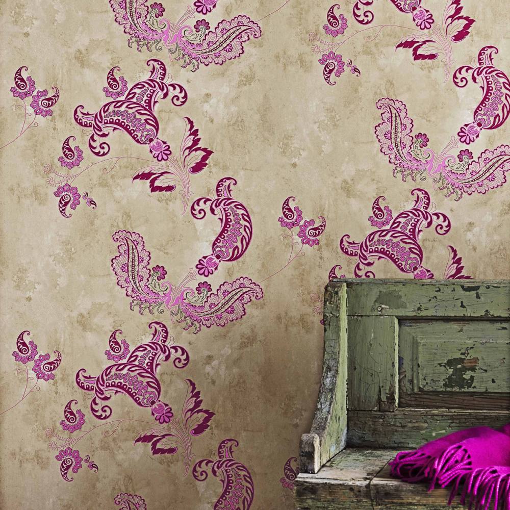 A4 size sample available DELIVERY: Your Paisley Wallpaper in Hot Pink on Tea Stain will be dispatched within 3 working days.